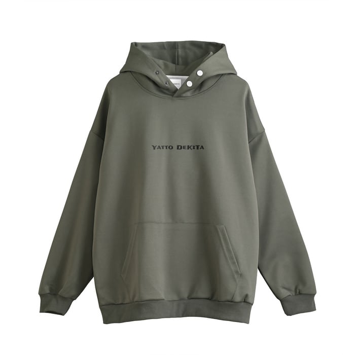 フード前部分にスナップボタンをあしらったアクティブパーカー。